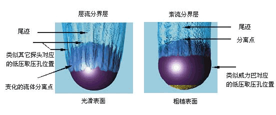 根據空氣動力學原理設計的前粗糙表麵層流邊界(jiè)層和紊流邊界層的比較
